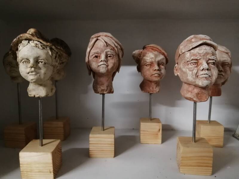 De beelden worden met de hand geboetseerd en afgebakken in de oven.